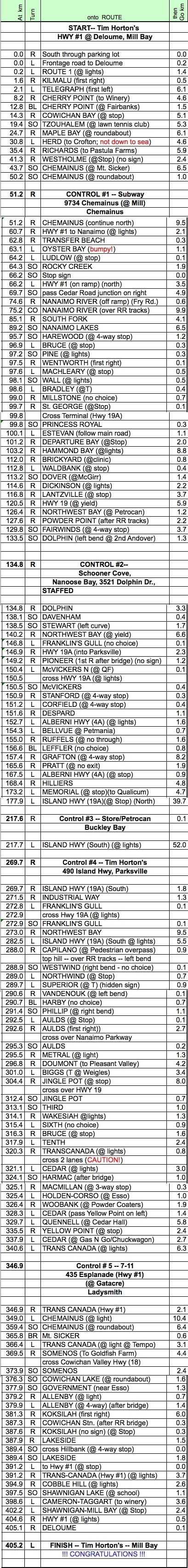 Backroads 400 km July 26, 6 a.m. Ride Organizer: Start/Finish: Mill Bay: Tim Horton's, 825 Deloume Road Route Sheet Route Notes |