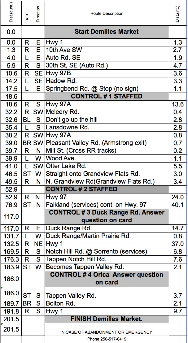 Pritchard Plummet 200 km April 19, 7 a.m. Ride Organizer: Start/Finish: Salmon Arm: Demilles Market Route Sheet Map Bob's Notes from the Pre-ride |
