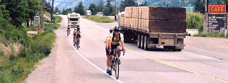 Hathaway trophy winner John Bates (out front) had no trouble staying ahead of Danelle Laidlaw this year... also-rans Peter, Eric and Henry, struggle to keep pace with John and Danelle on the Cache Creek 600. photo: Janine Chase, June 2001.
