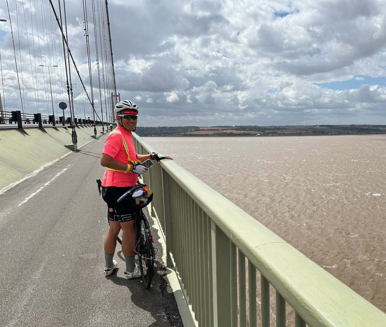 Douglas Qi on the Humber Bridge at 2025 London Edinburgh London, August 6