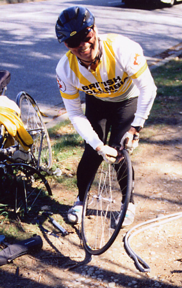 Roger Street Remembered On Tuesday morning (Feb 25, 2003) at about 6:45 Roger Street had a heart attack and died while riding his bicycle. It happened at 16th and Blanca. The heart attack is unexpected. By all accounts Roger was in excellent shape. He had done a fast 100 km training ride on Sunday and was looking forward to a quick SIR (Seattle) Populaire this coming Saturday. Roger has been a central figure in BC Randonneurs since he rode his first brevets in 1993. He is a two-time finisher at both Paris Brest Paris and the Rocky Mountain 1200, and a six-time super randonneur. He is one of only 9 BC riders to have earned 2 Brevet Randonneur 5000 pins (sometimes called 'Super 5000'.) In 1998 he was the winner of the John Hathaway Award with an event distance total of 5676 km... and it was Roger who first started calling the award by the name we all now commonly use - the Iron Butt Award. In 2000, he was looking for a change of pace and rode across Canada - Spanish Banks to Cape Spear, Nfld. - 7433 km, average riding speed 25 km/hr, 151 km/day. In the fall of 1998 Roger became club treasurer, and oversaw the period of extraordinary growth which followed. For the four years that he was on the randonneur committee his strong opinions, bluntness, and clarity of thought helped keep the club on track on an ongoing basis. It would not be going too far to say that by 2002 he had become the conscience of the randonneur committee. In 2002 he teamed up with wife Sharon to co-direct the Rocky Mountain 1200 - perhaps our club's finest moment. Roger's wife Sharon is another central figure in BC Randonneurs. In addition to co-directing the RM 1200 last summer, she co-organized the Pacific Populaire in 2001 and 2002. She frequently supported Roger and other riders on brevets and flèches, and has been a familiar sight on event days for many years. This is a loss that is no doubt difficult for everyone. Me included. Roger was a great friend, and there is no one whom I admired more. I can't believe he's really gone. I will miss him greatly, and remember him always. Good-bye Roger. February 27, 2003 |